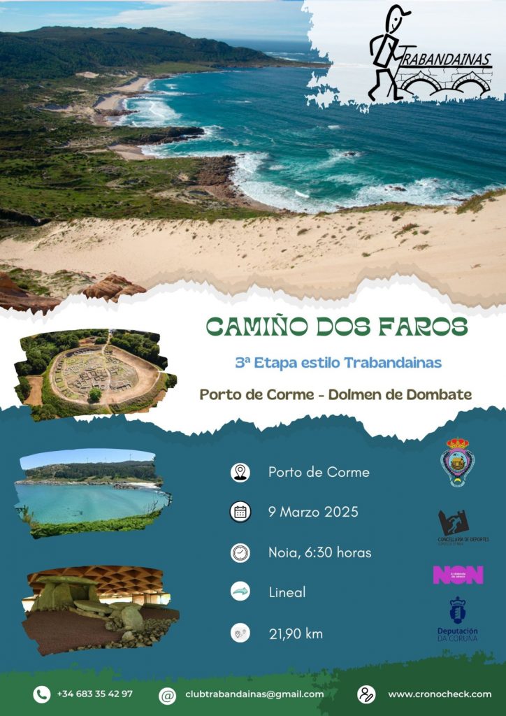 O 9 de Marzo, si o tempo o permite, continuaremos o roteiro do Camiño dos Faros – Diseño Trabandaina, e realizaremos a 3ª Etapa dende Porto de Corme ao Dolmen de Dombate Distancia: 21,90 km Dificultade: Media […]
