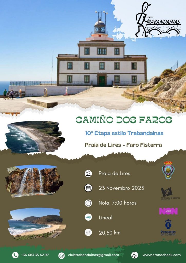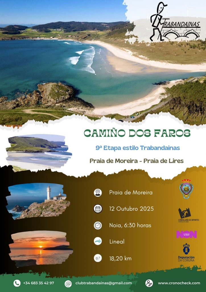 O 12 de outubro , se o tempo o permite, continuaremos pola ruta do Camiño dos Faros – Trabandaina Design , e realizaremos a 9ª Etapa dende Praia Moreira ata Praia de Lires. Distancia: 18,20 km Dificultade: […]